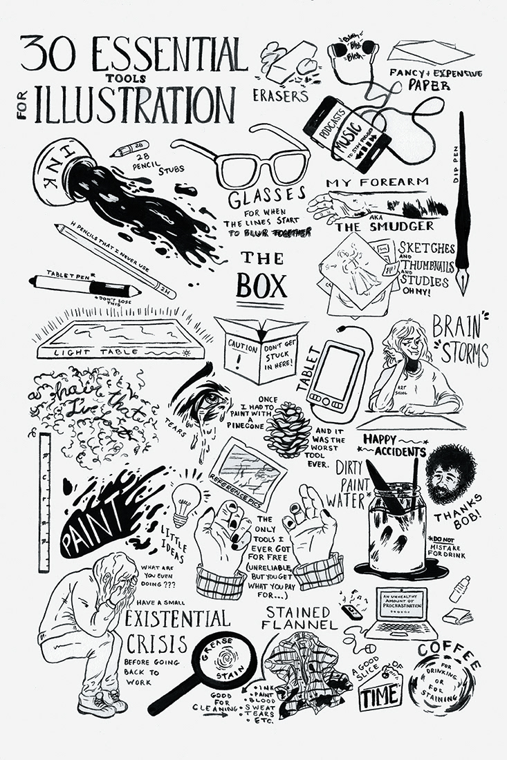 A collection of 30 tools (physical, conceptual, or otherwise) that define my illustration process.